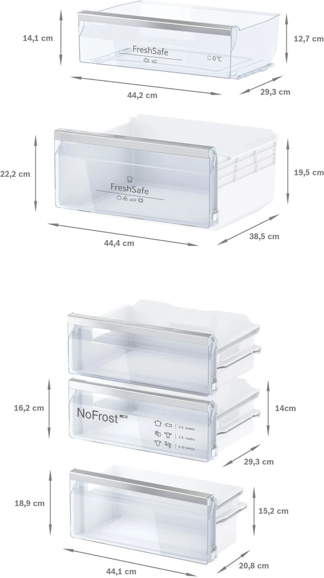 Наполнение холодильной камеры3 х полки, в т.ч. 1-хромированная для бутылок, 3 х лотка для яиц, 2 х ящика
