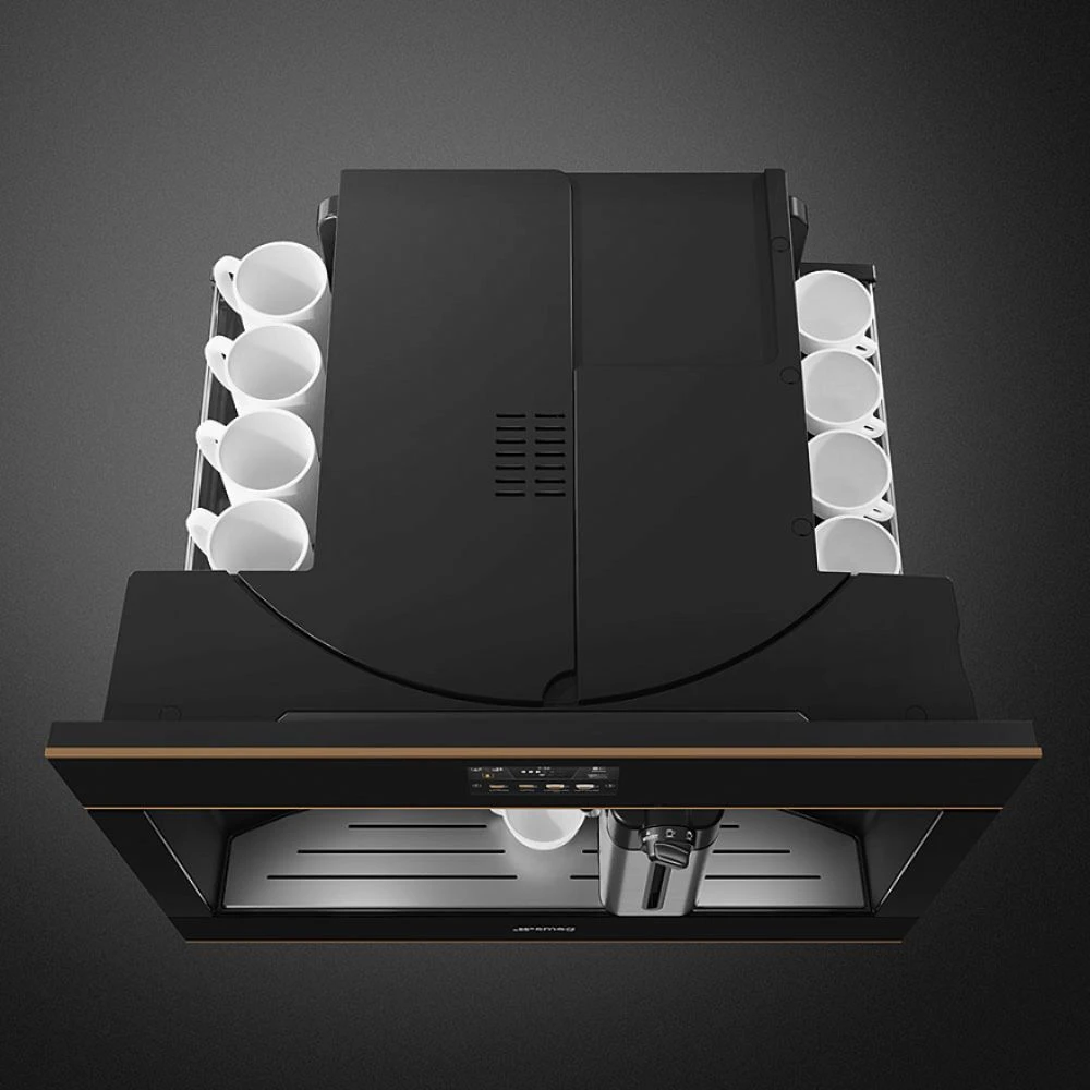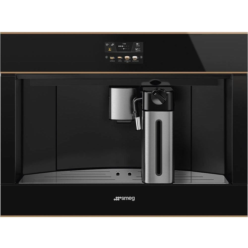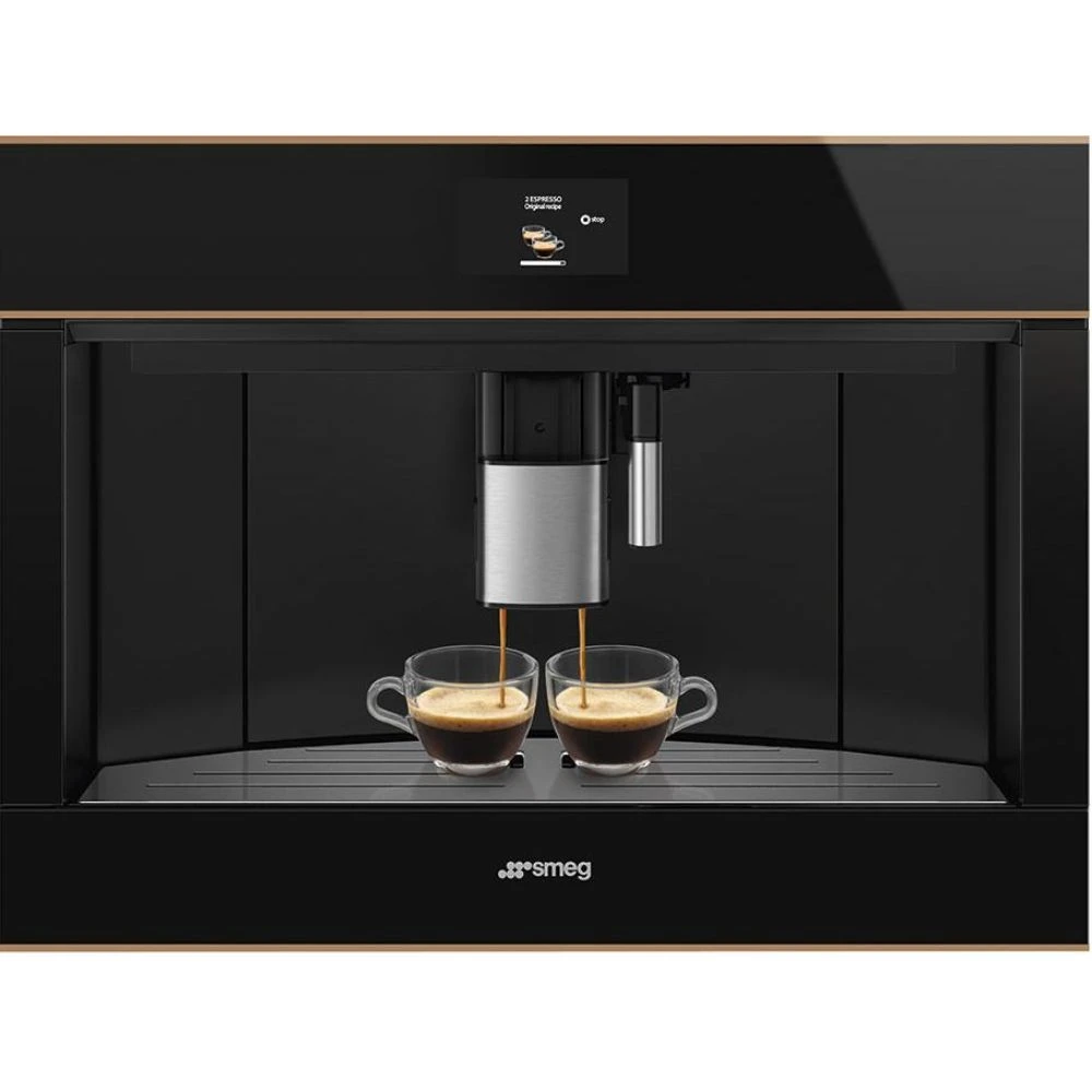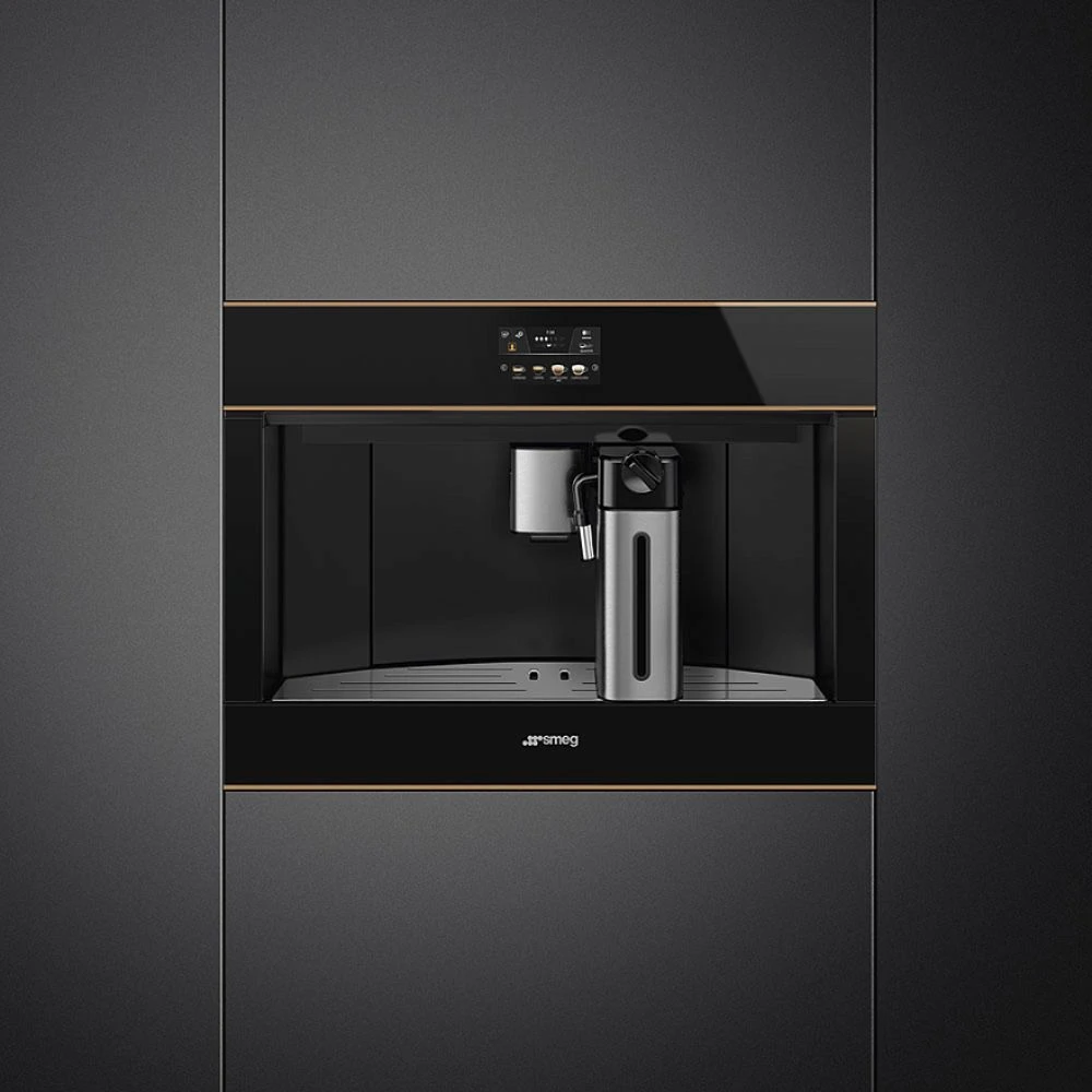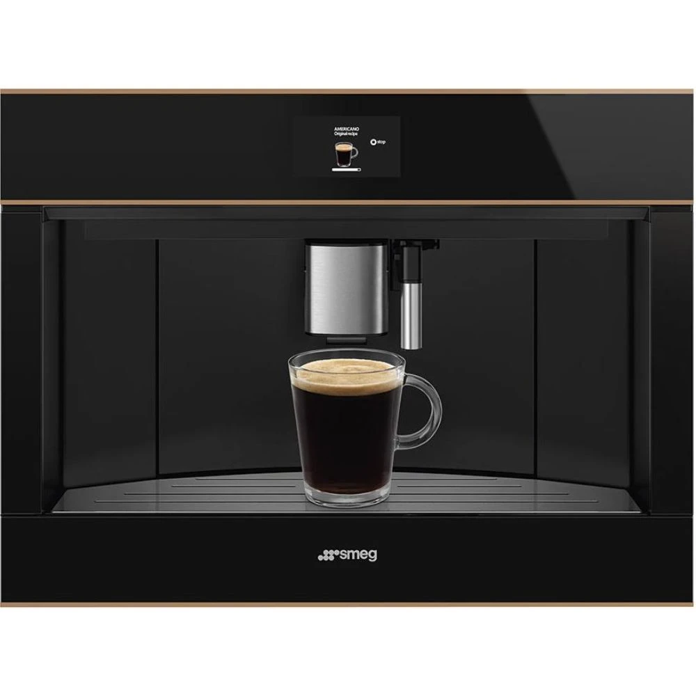 Автоматическая встраиваемая кофемашина Smeg CMS4604NRRU представляет собой надежное и качественное решение для современной кухни. Эта новая модель из коллекции Dolce Stil Novo позволяет готовить любимые напитки профессионального уровня прямо у вас дома. Черный фасад с медной отделкой и стеклянный тип поверхности подчеркивают статусность интерьера. На прибор предоставляется официальная гарантия сроком 1 год. Приобрести эту технику можно в интернет магазине с доставкой в такие города как Москва и Санкт Петербург.