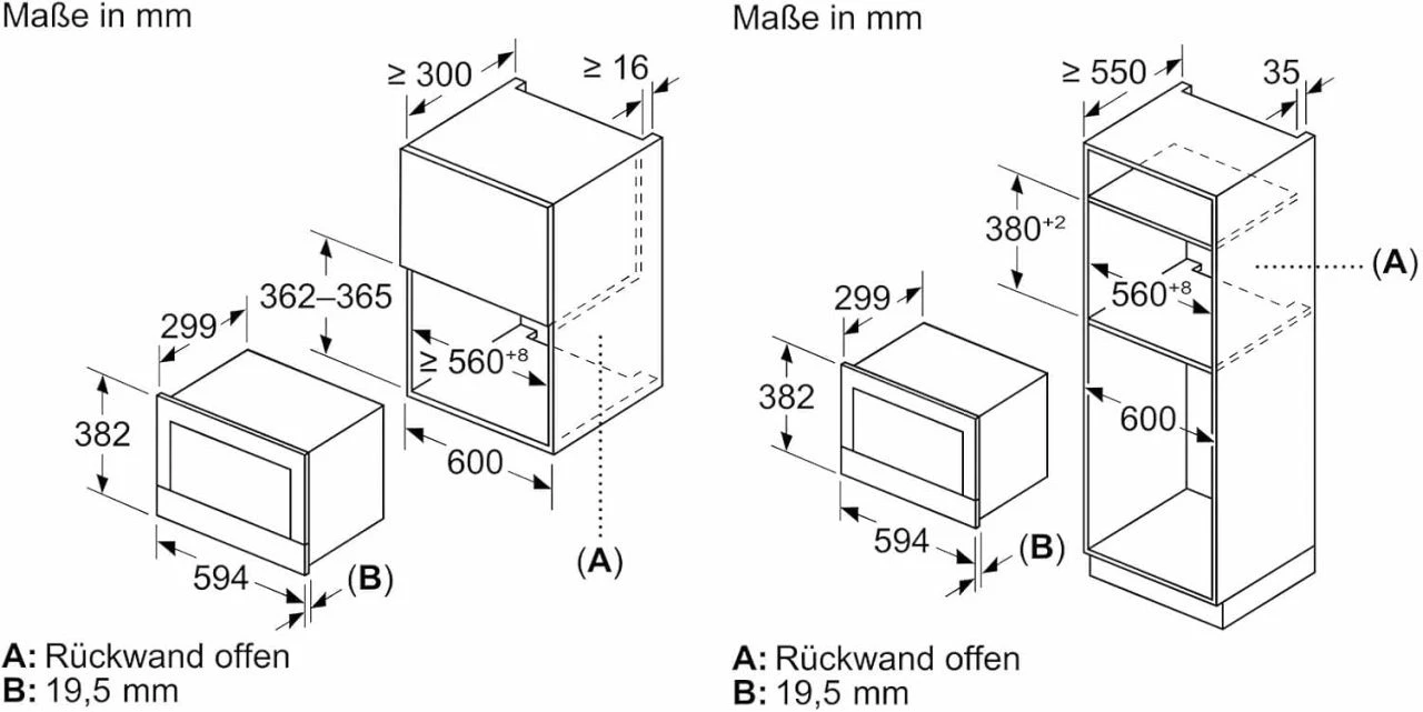 Размер ниши для встраивания362-382/560-568/300