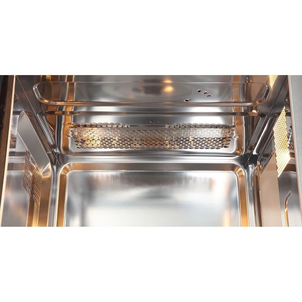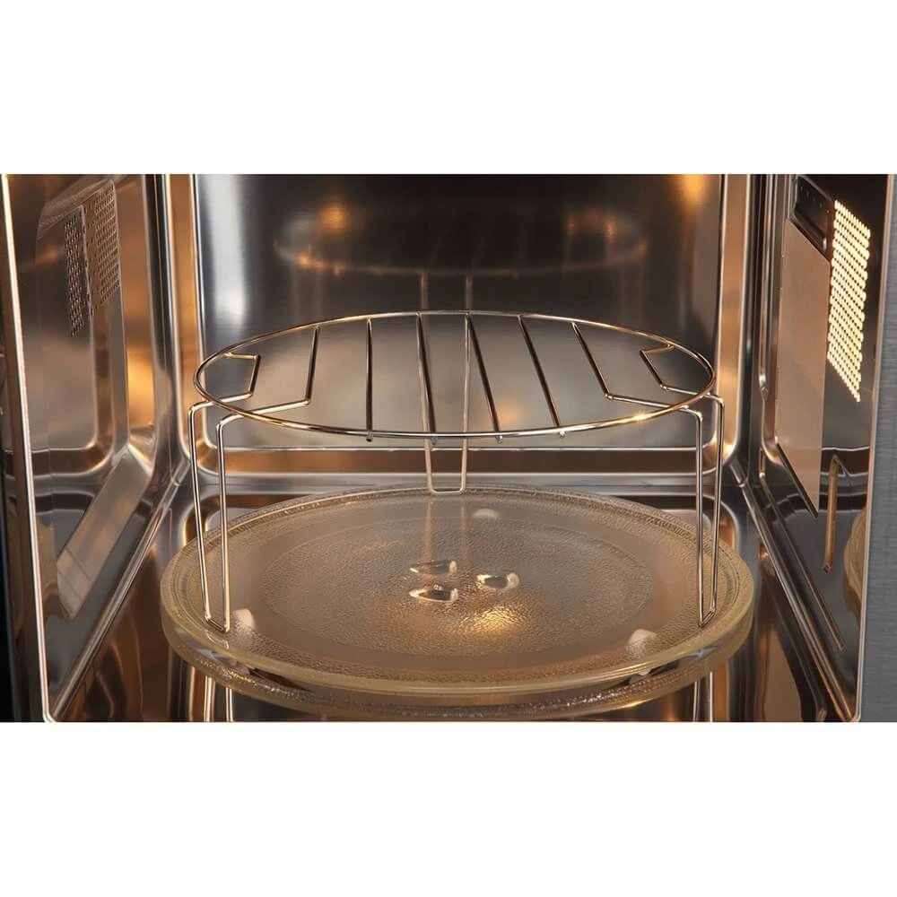Внушительный объем камеры в 20 л и стеклянный поворотный стол диаметром 245 мм позволяют с легкостью разогревать крупные порции и готовить объемные блюда. Внутреннее покрытие из нержавеющей стали отличается устойчивостью к повреждениям и легко очищается, что позволит без дополнительных усилий поддерживать чистоту.