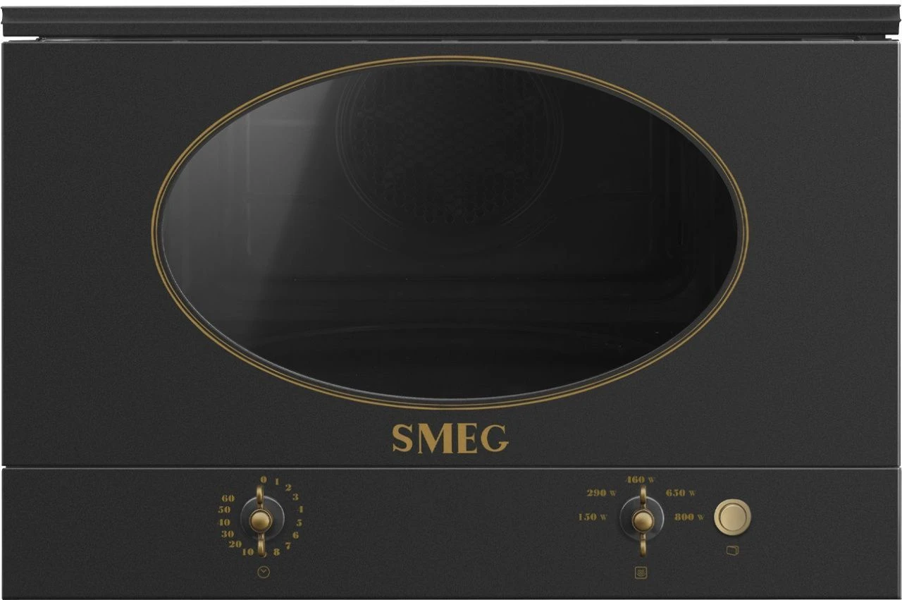 Встраиваемая микроволновая печь Smeg MP822NAO из дизайнерской коллекции Coloniale сочетает винтажную эстетику с современной функциональностью. Модель выполнена в глубоком антрацитовом цвете с элегантной латунной фурнитурой, что делает ее изысканным дополнением кухни в классическом или ретро-стиле. Дизайн в колониальном стиле создает атмосферу благородной старины, гармонично сочетаясь с другой техникой этой серии.