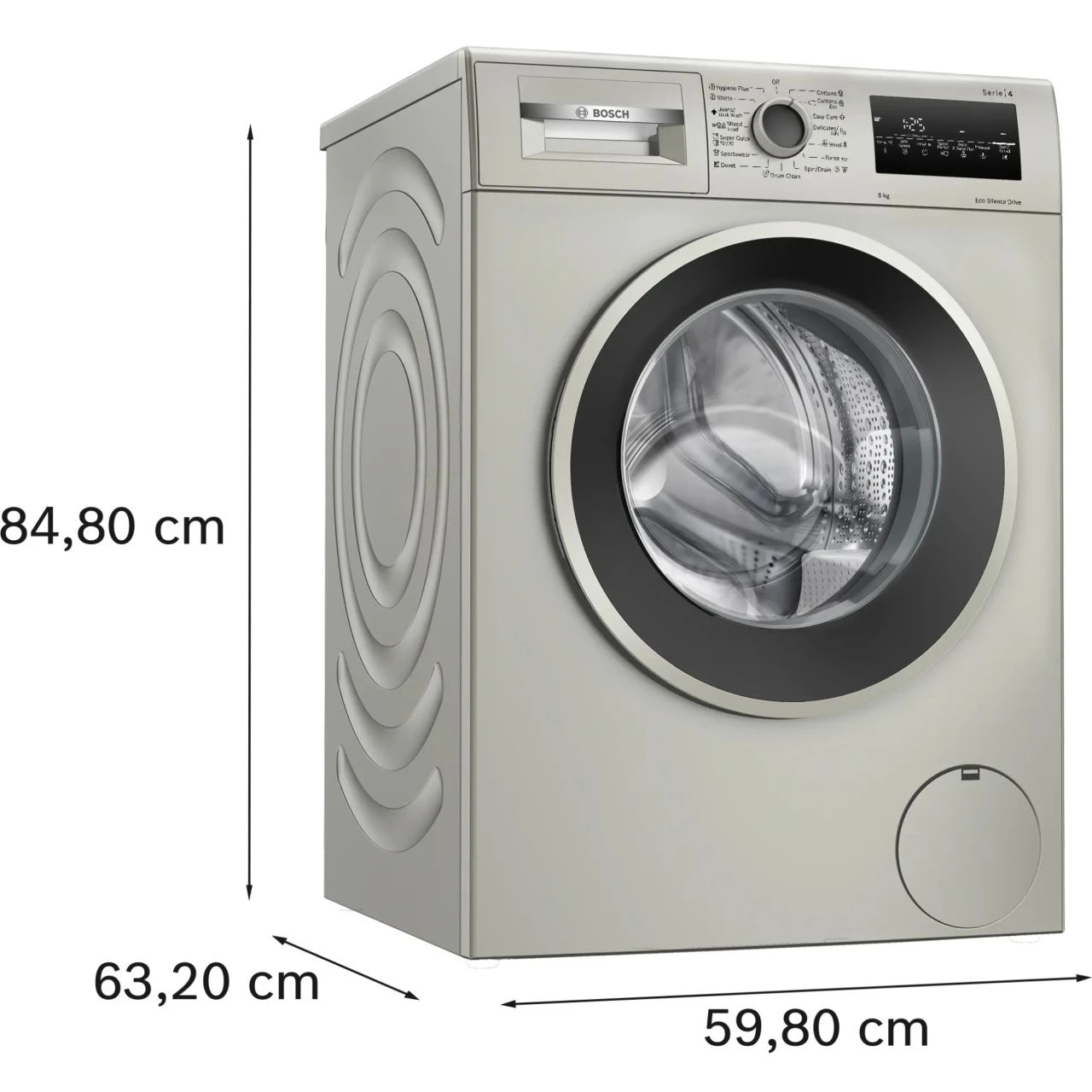 Компактные габариты 84.8×59.8×60 см позволяют легко разместить стиральную машину даже в небольших помещениях, таких как ванные комнаты или кухни. Это делает модель универсальной для установки в квартирах с ограниченным пространством.
