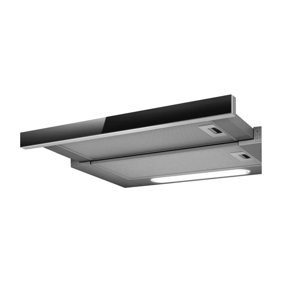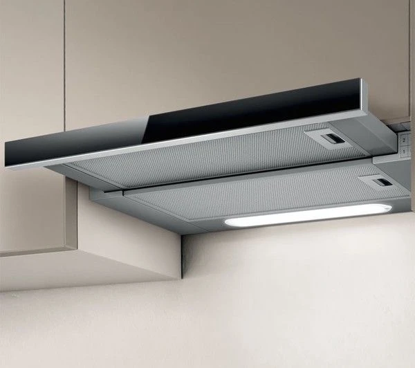 Прибор включается путем выдвижения передней панели. Простые кнопочные переключатели гарантируют удобное управление тремя скоростями вытяжки и включением/выключением освещения. Алюминиевый фильтр пригоден для мытья в посудомоечной машине. Модель может работать в режимах отвода и рециркуляции (угольный фильтр для работы в режиме рециркуляции должен быть приобретен отдельно).